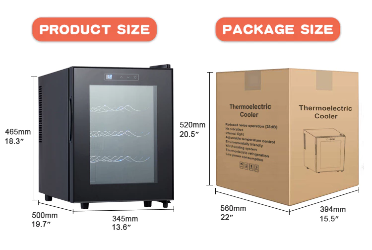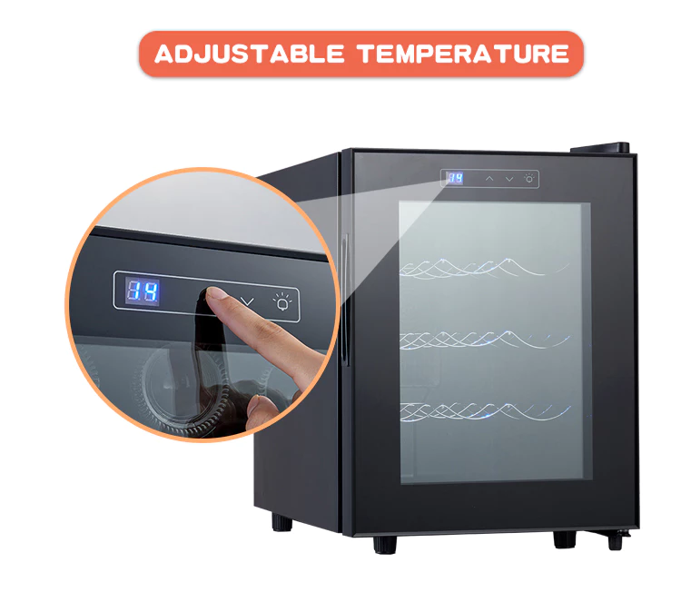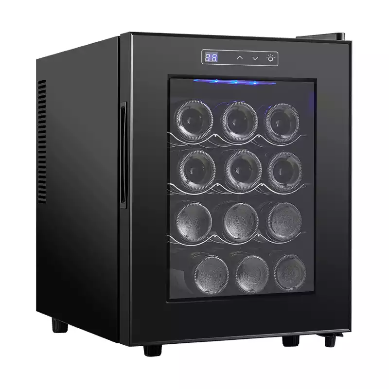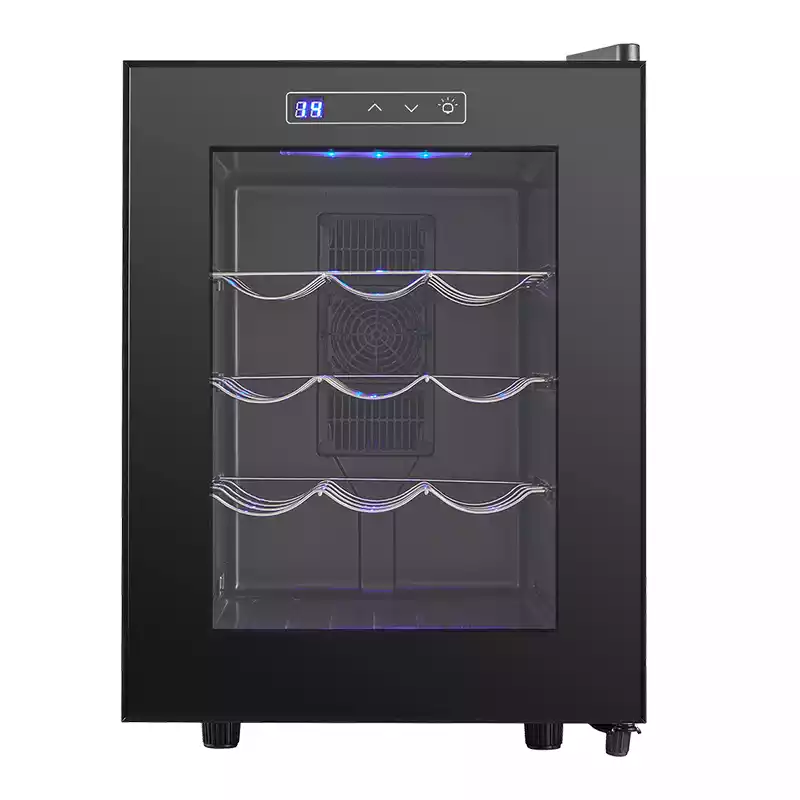 12 Bottle Thermoelectric Wine Cooler is perfect for wine enthusiast who wants to store their wine at the ideal temperature. It features a whisper operation with a compact design that fits virtually anywhere in your kitchen. The thermoelectric cooling system maintains an optimal temperature of 53.6-64.4℉ (12-18℃). An attractive display screen and led lighting add ambiance and style to any room, while removable wine racks provide extra storage space when you need it.