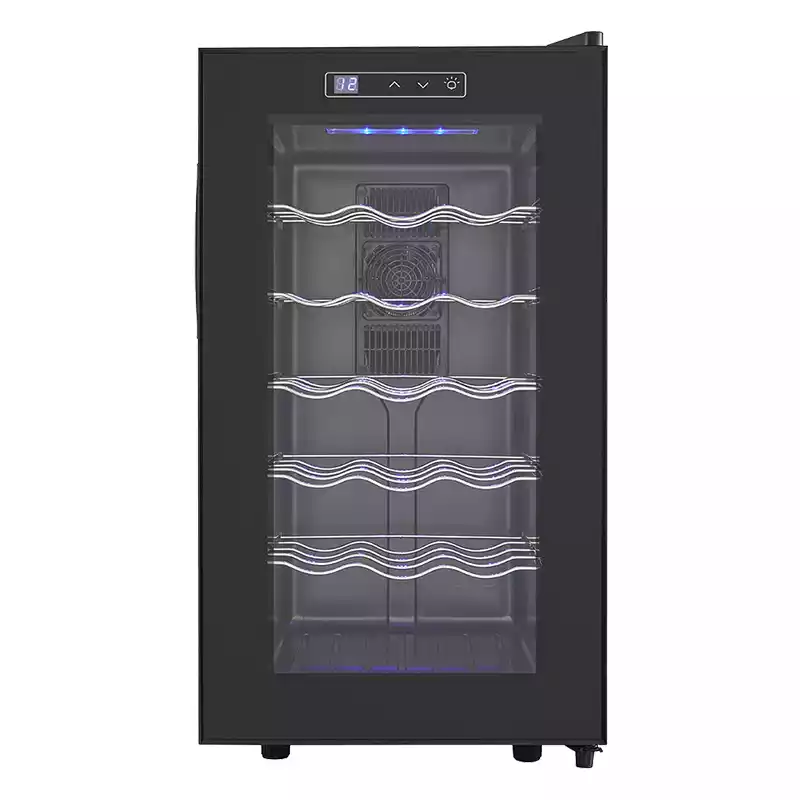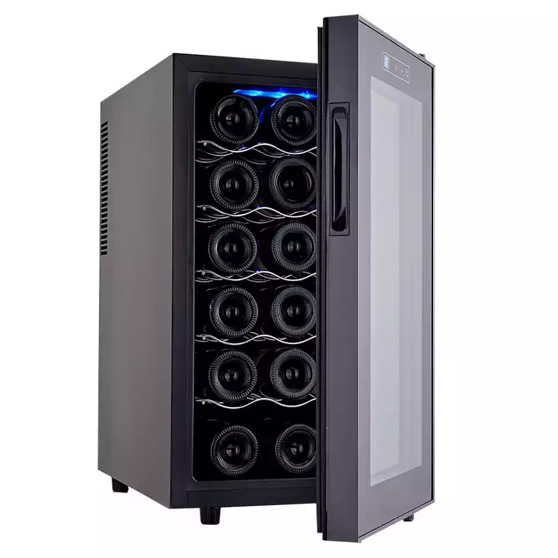 The 18 bottle thermoelectric single zone wine cooler can store red and white wines. It has 4 adjustable legs that make it easy for sliding between standard base cabinets. Still, this sleek modern design also makes the fridge attractive enough to be placed independently in any room of your home!