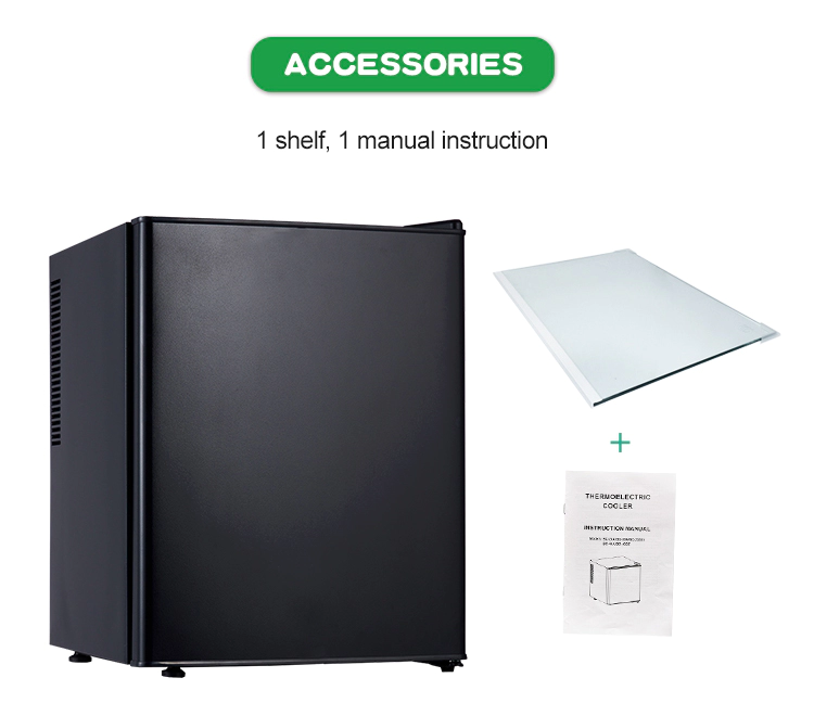 Hotel Minibar 40L solid foam door is perfect solution for hotels. With thermoelectric cooling system and LED lighting.